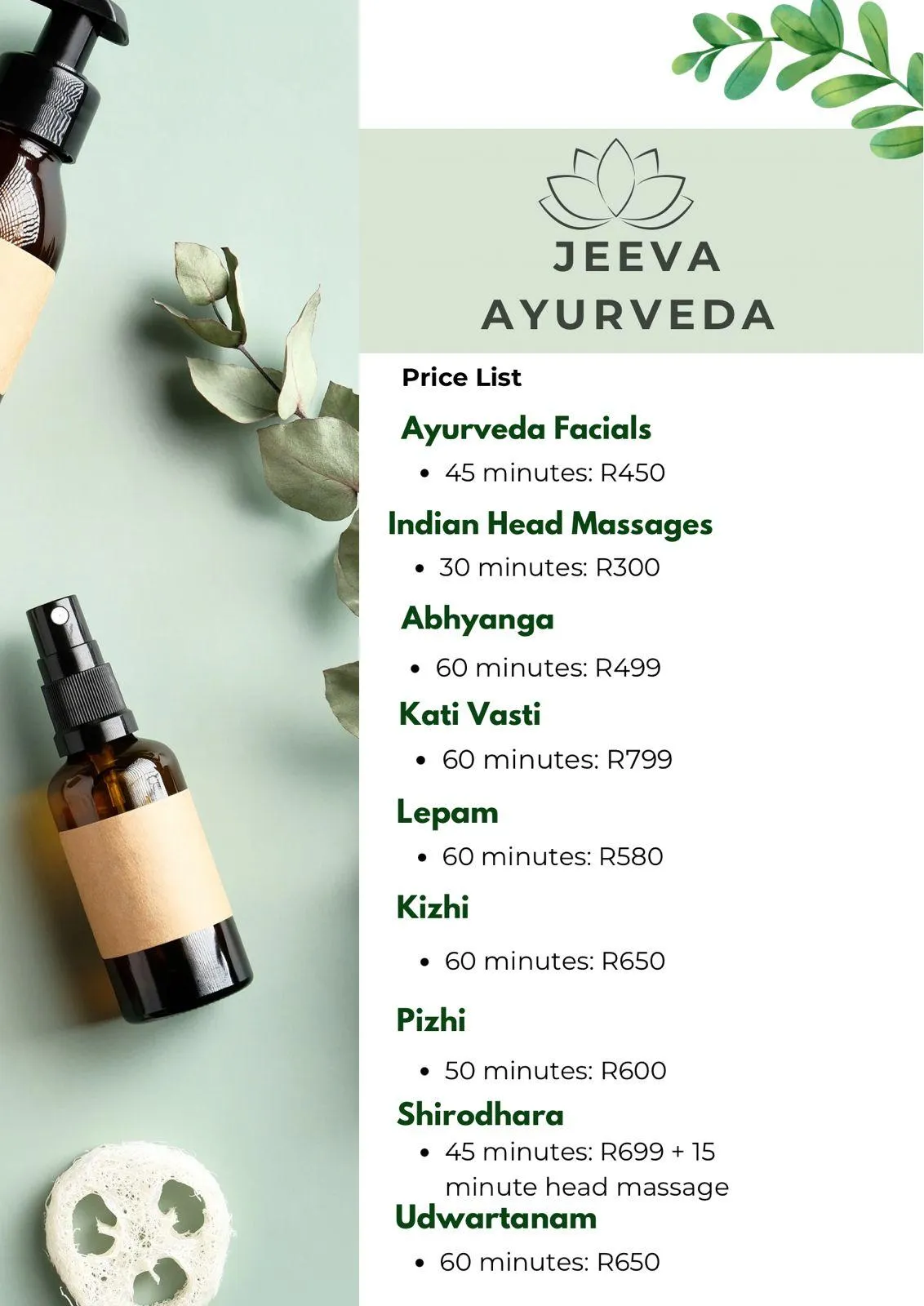 Bringing ayurvedic massages from Kochin, Kerala, India to Sandton where this ancient form of massage combines massages with specific oils and philosophy to help in the healing processes of different ailments.